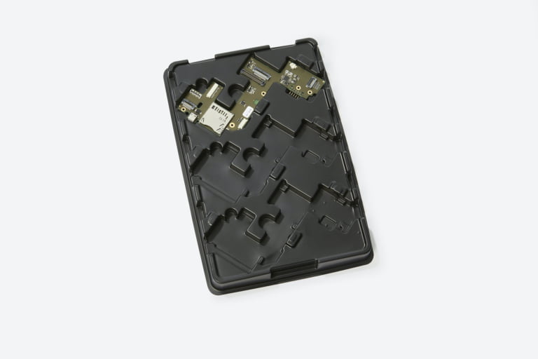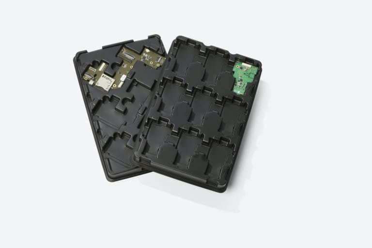 Vakuumformad display för Maria Åkerbergs hudvårdsprodukter med golvstativ av metall